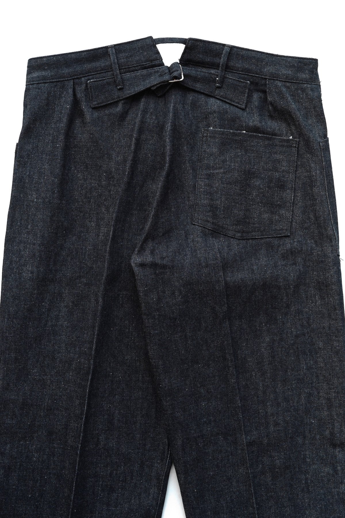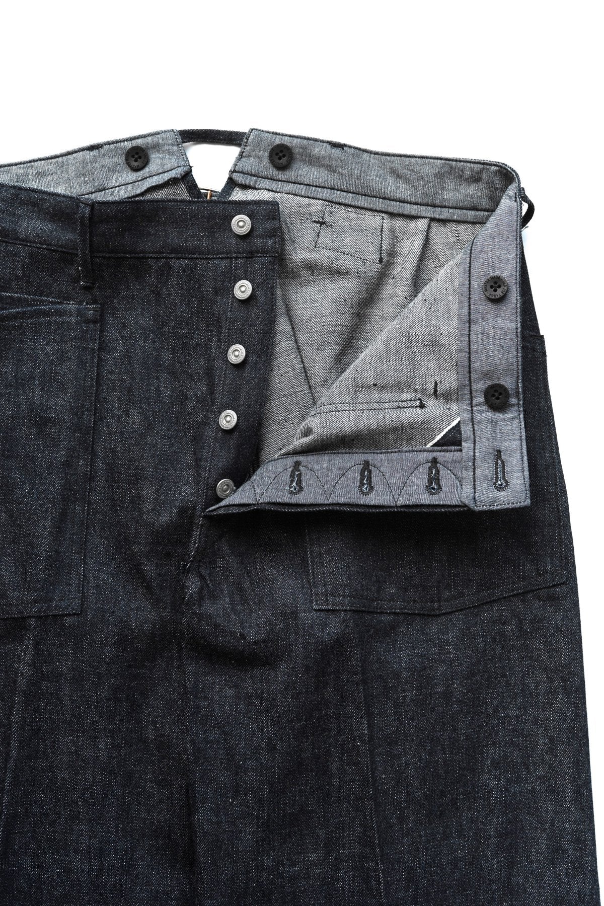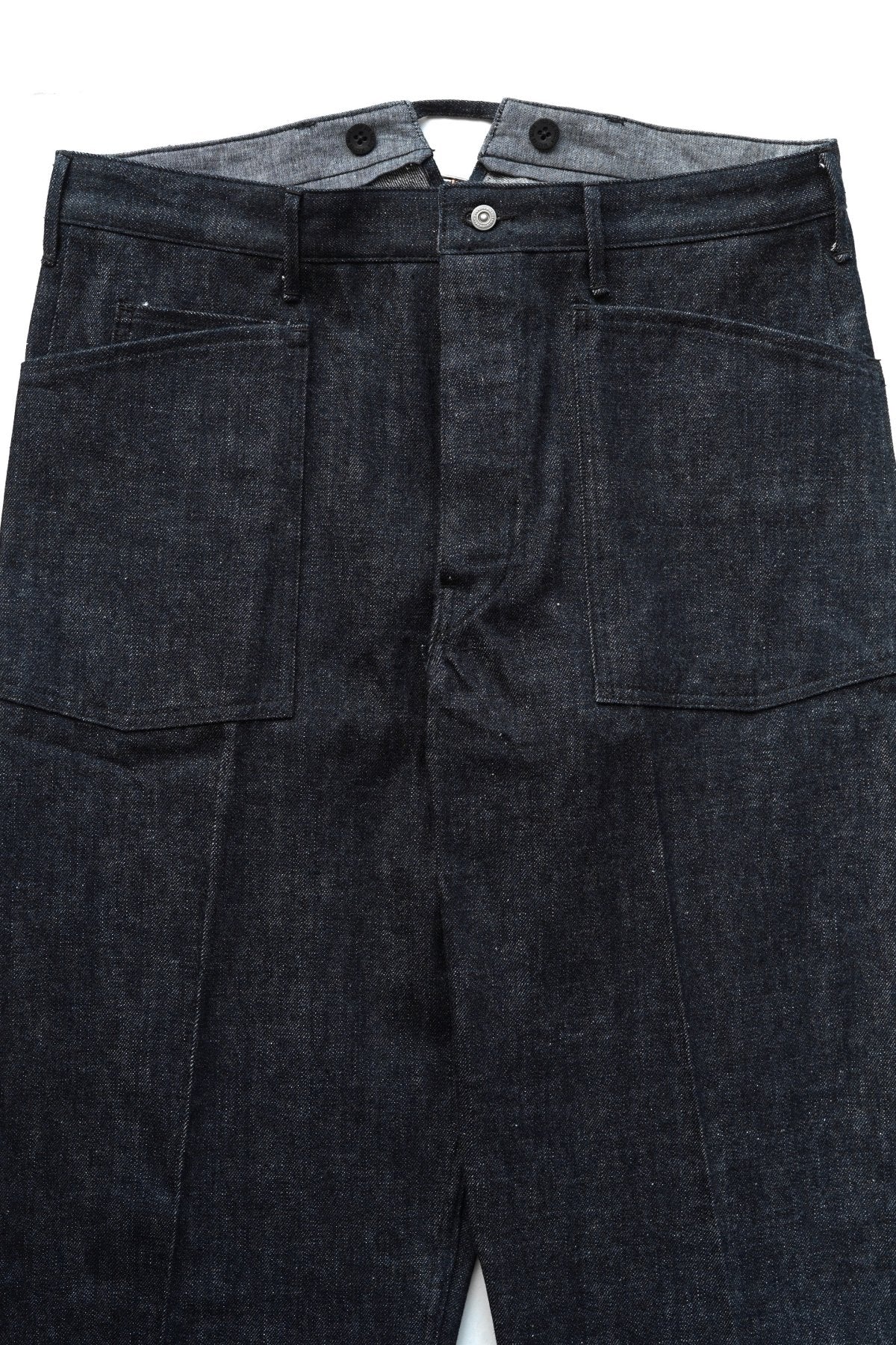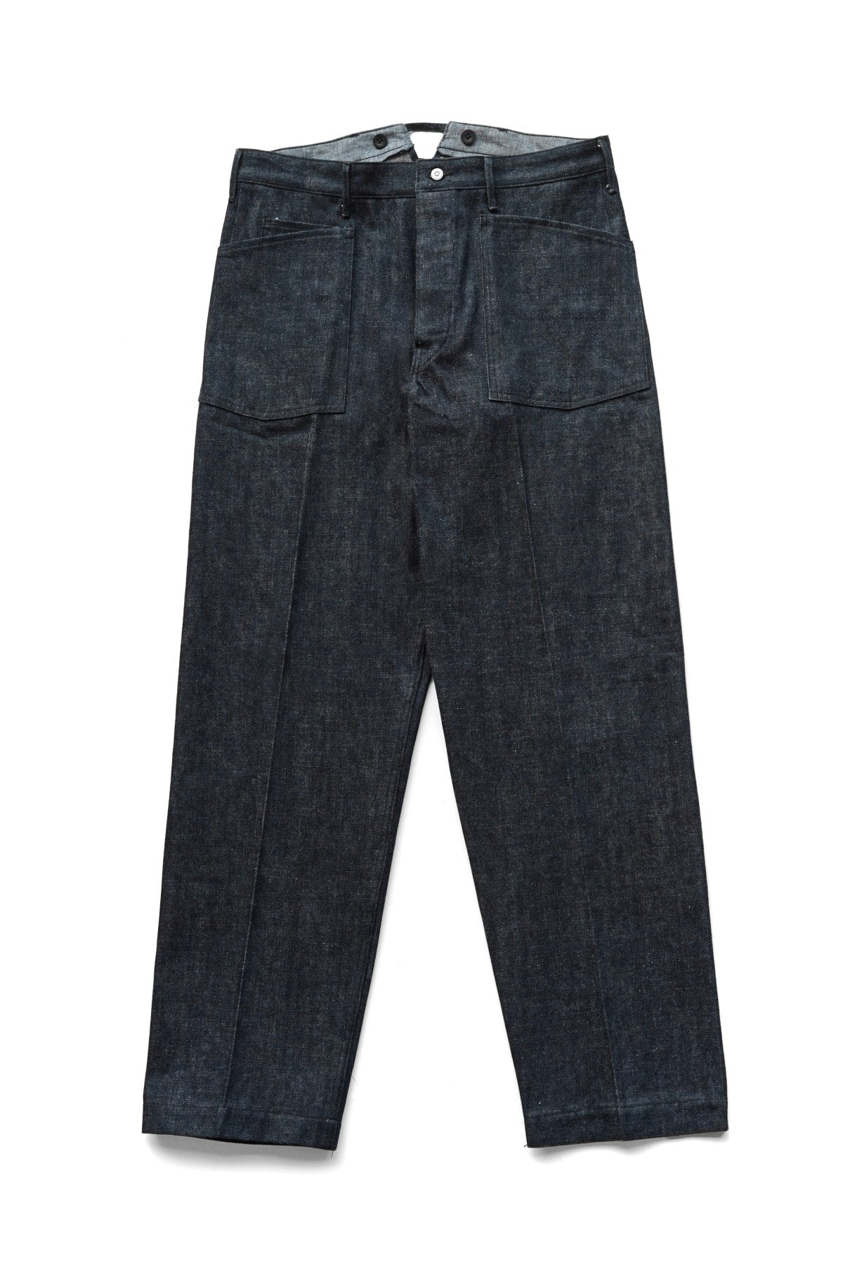 チョアジャケット同様、新型となるワークトラウザー。サイドシームレスなパターンメイキングにより、足を通した際の肌さわり、シルエットのラインなど、他にはないものとなっています。このピースもジャケットと同様に、様々な年代のアーカイブピースディテールを組み合わせてデザインされています。