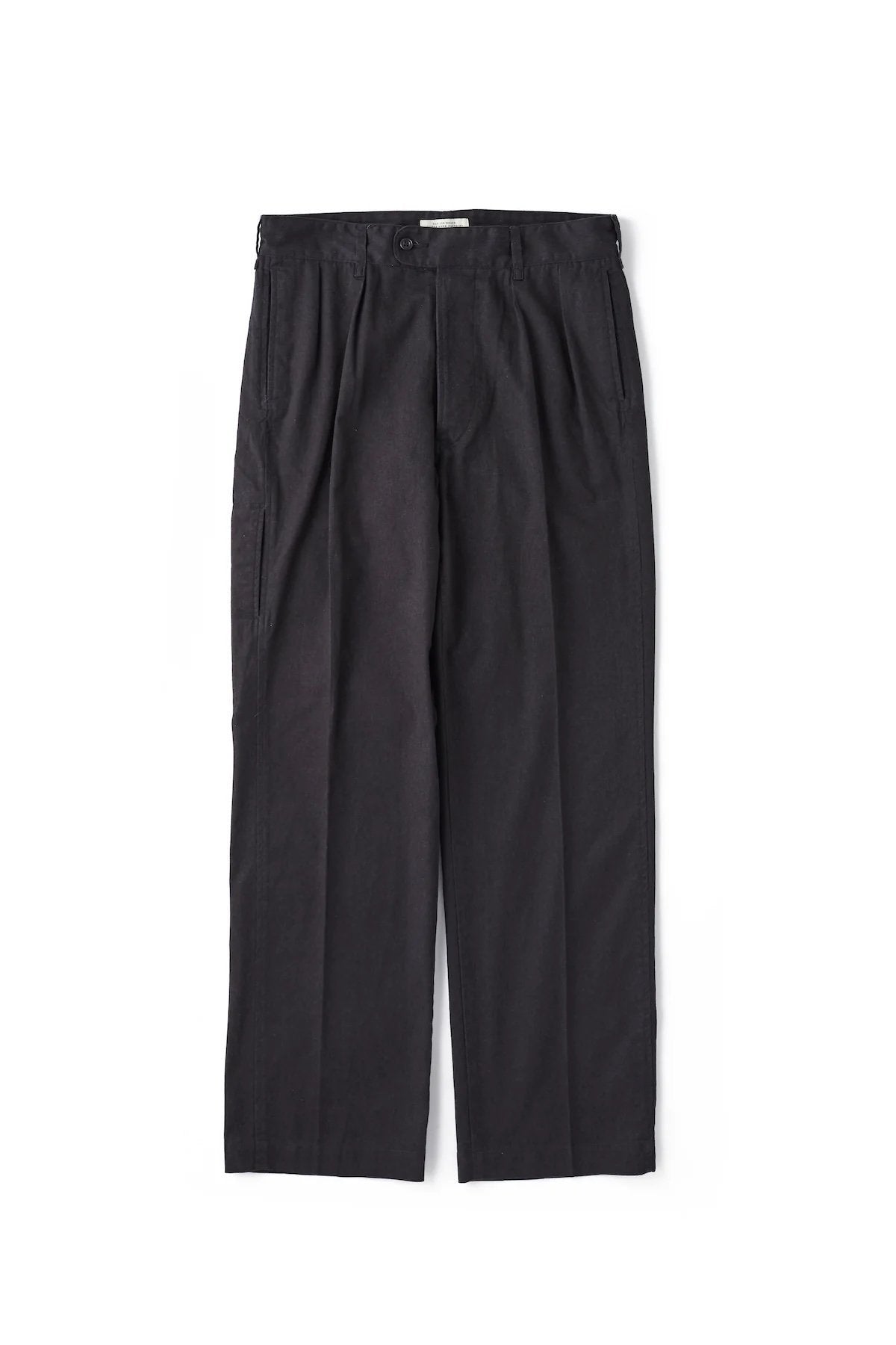 新型となるダブルプリーツトラウザーは古い時代のユーロミリタリーのデザインからインスパイアされていて、フィッティングラインは比較的に細めのラインとなっています。 定番のフロントタックトラウザーがUSインスパイアのワイドフィットなら、こちらはUKインスパイアのミドルフィットの ミリタリートラウザーといったところでしょうか。細部のステッチにポケット形状などが特徴的で、太腿付近に配されたポケットも目立たないように設計されています。また微かなムラ染めを施したカツラギは着古したかのようなフェード感を楽しめるでしょう。