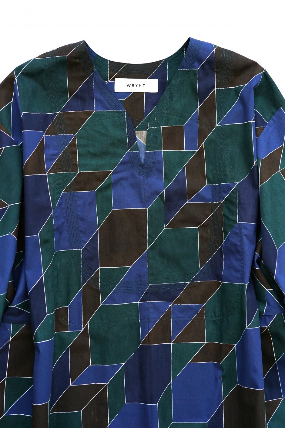 砂漠の民たちのサマードレスからのインスピレーション。 かなりビッグシルエットでガバッと被るようなスリットネックのデザイン。 ネック周りにレイアウトしている整列したステッチがトライブ感を盛り上げる。 ”SAHARA TROUSERS"と同じマテリアルで展開しているので、 セットアップで着こなすのもハンサムでWRYHTらしい。