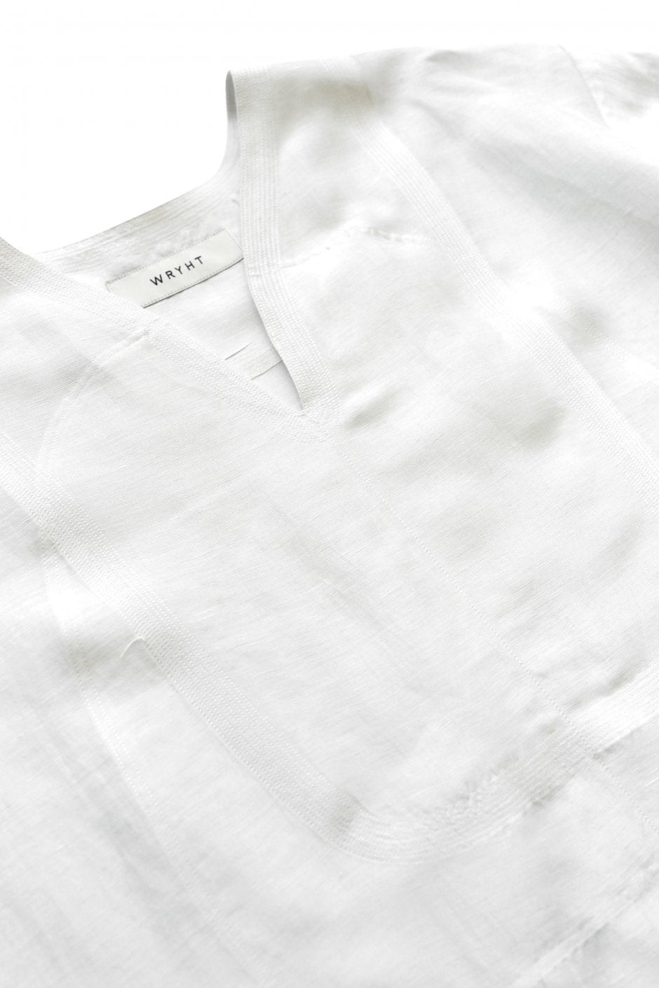 砂漠の民たちのサマードレスからのインスピレーション。 かなりビッグシルエットでガバッと被るようなスリットネックのデザイン。 ネック周りにレイアウトしている整列したステッチがトライブ感を盛り上げる。 ”SAHARA TROUSERS"と同じマテリアルで展開しているので、 セットアップで着こなすのもハンサムでWRYHTらしい。