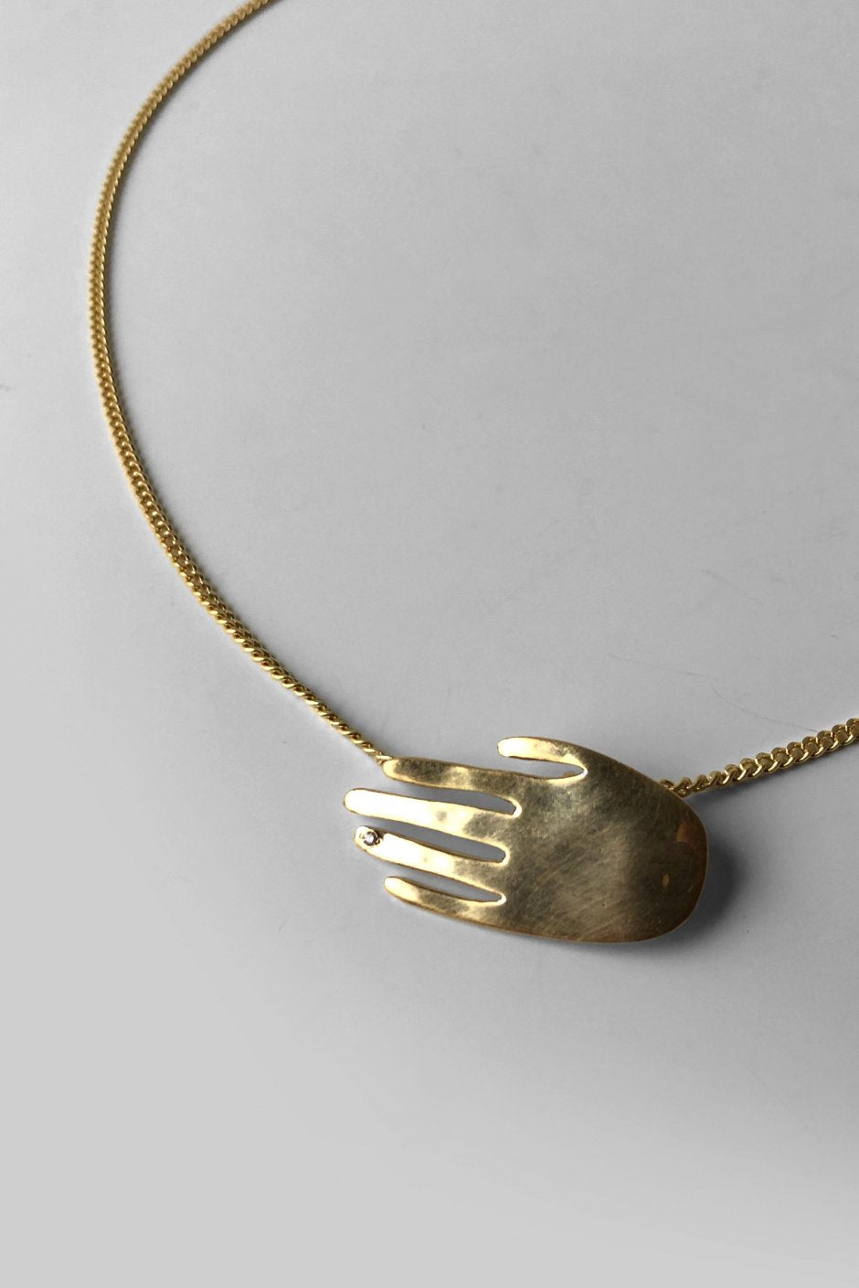 邪気を祓う手、幸福を受け取る手、差し伸べられる手に、ダイヤのkaki pickを装着したチョーカー。