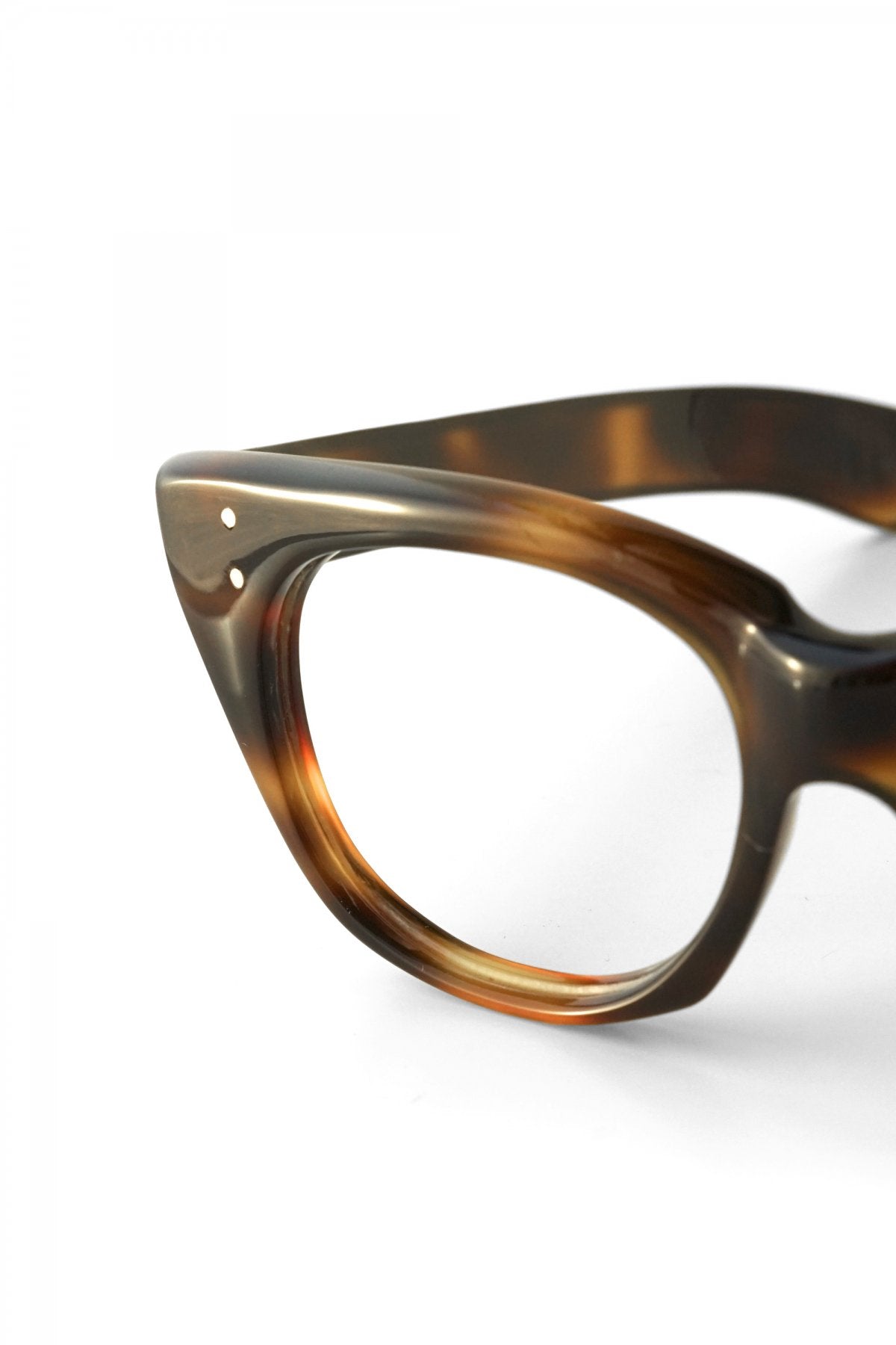1940s HAND MADE BRITISH VINTAGE EYEWEAR FAT TEMPLE AMBER - OPT-505