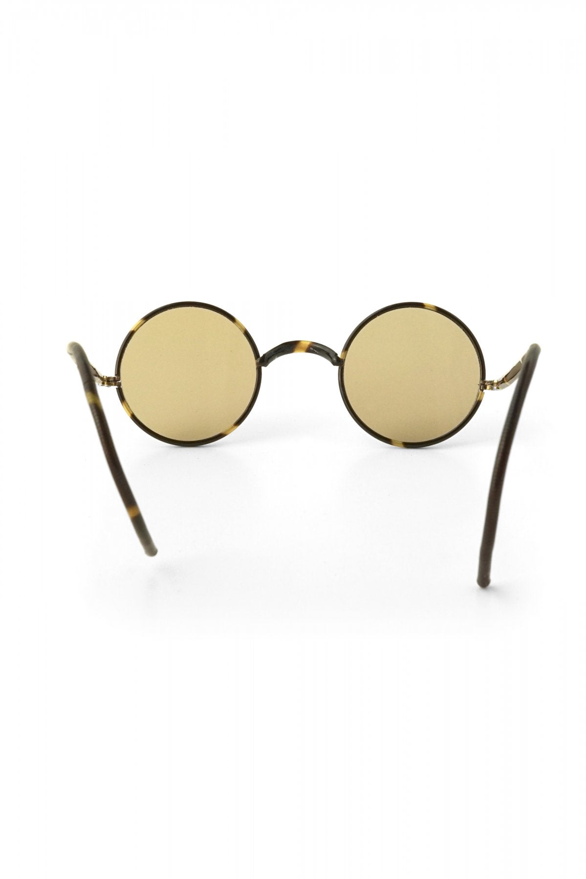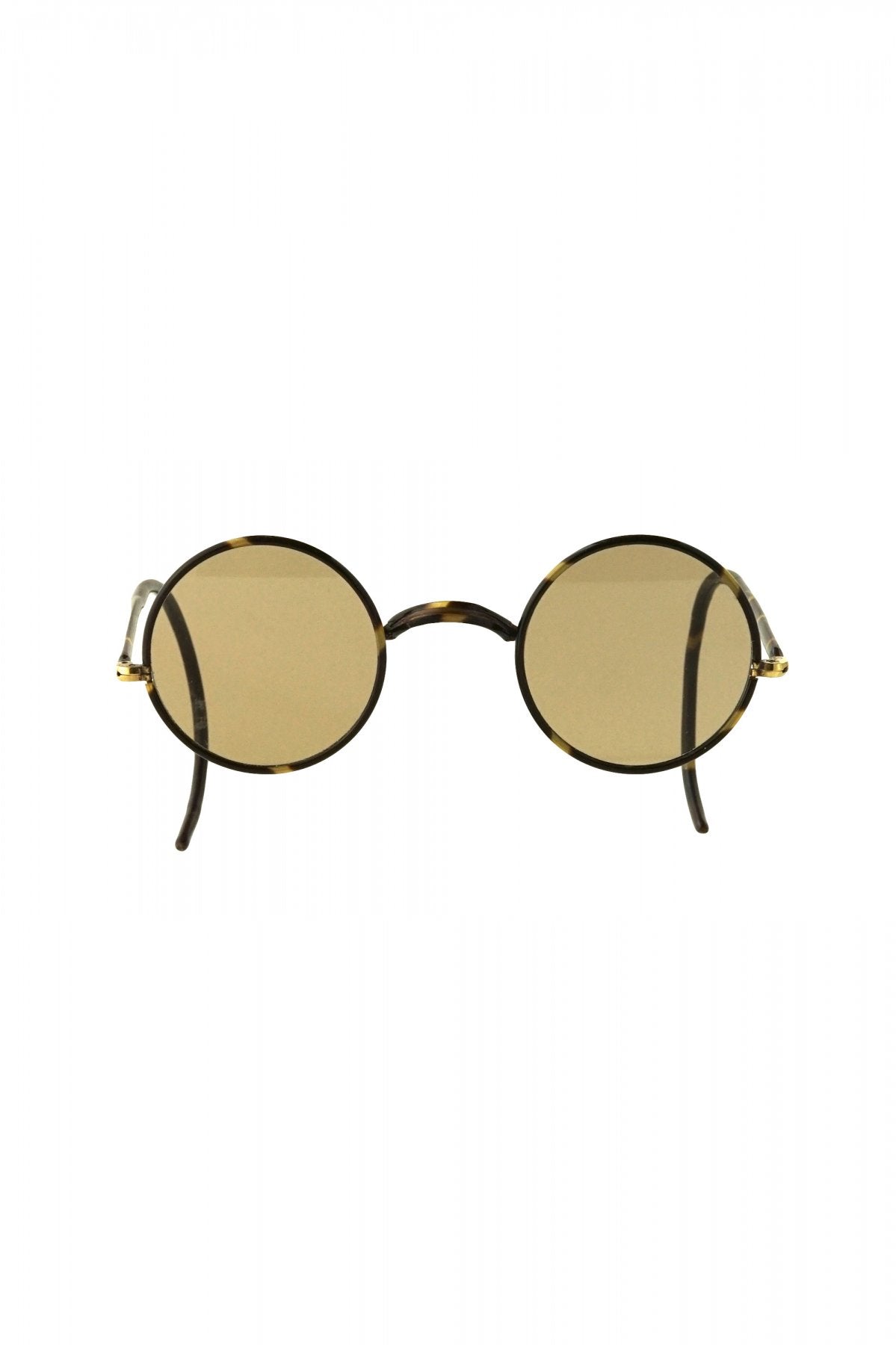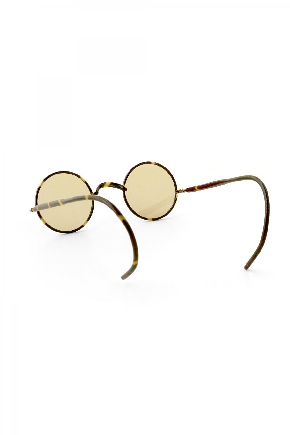 当時らしい一山ブリッジにサイドマウントのテンプル、金張りフレームにセル巻きと呼ばれるセルがフロント、テンプル、ブリッジ全てに巻かれたクラシックなデザイン。