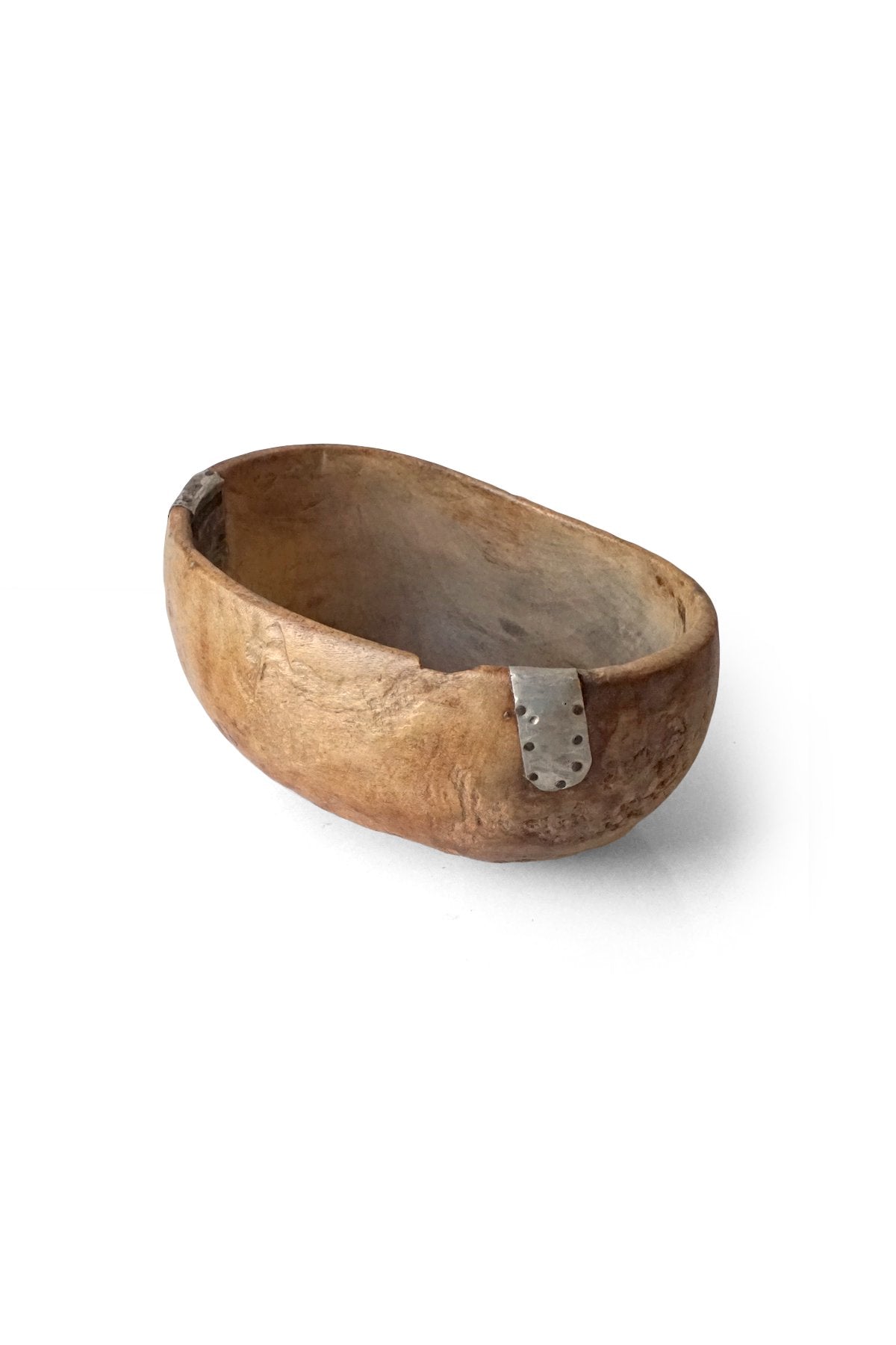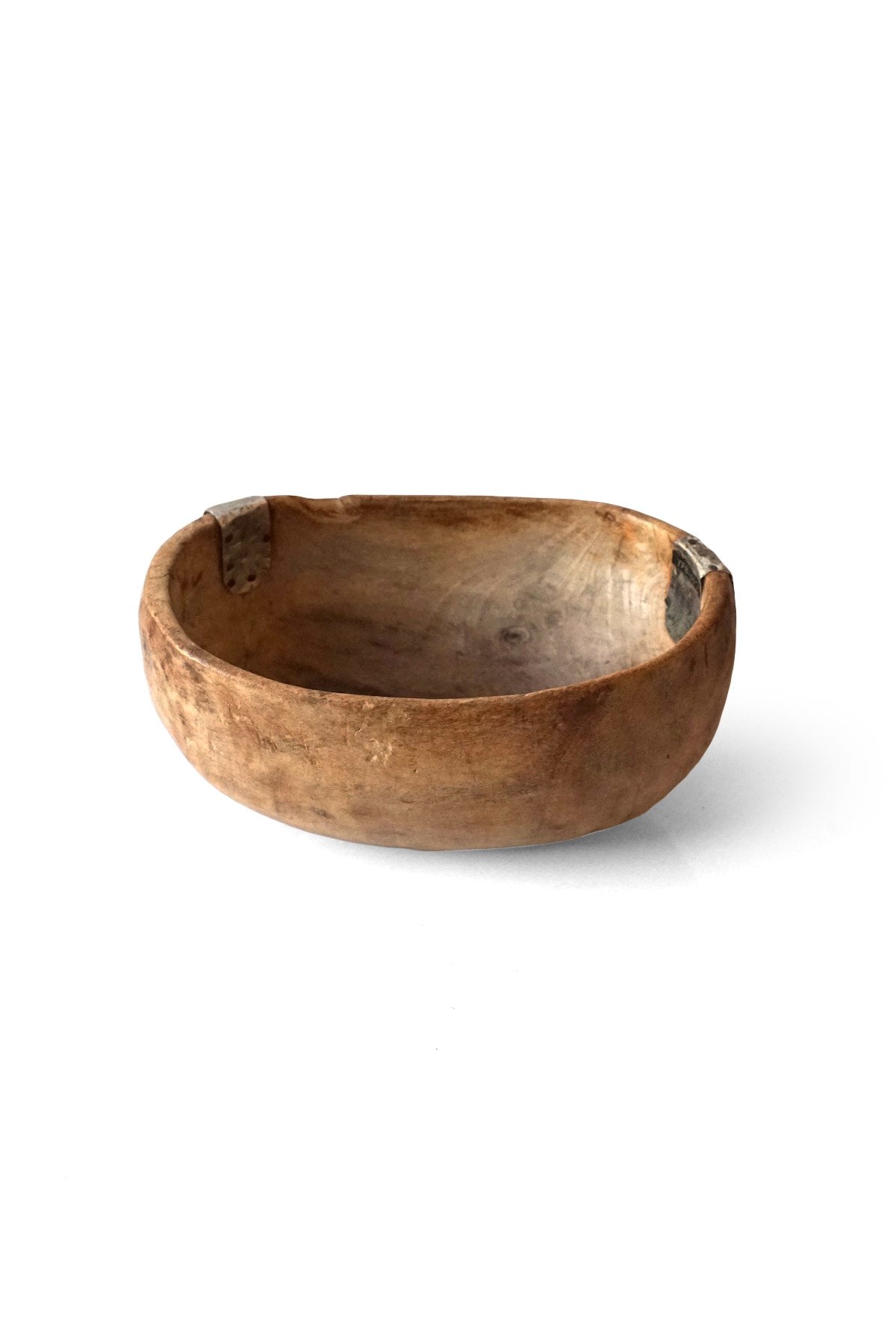 1つの木をくり抜いたプリミティブなモロッコの古いウッドボウル。