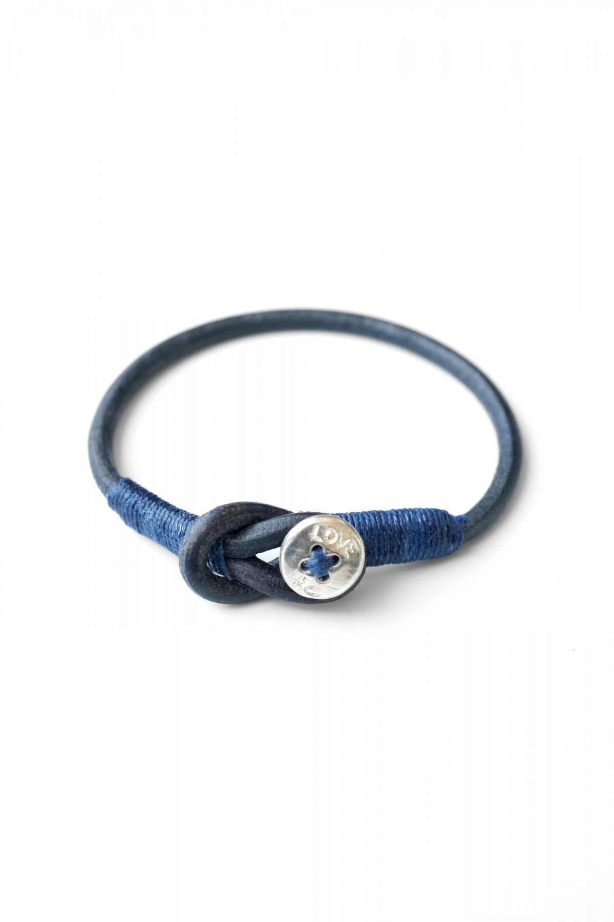 Porter Classic - LEATHER BRACELET W/ SILVER BUTTON - NAVY
