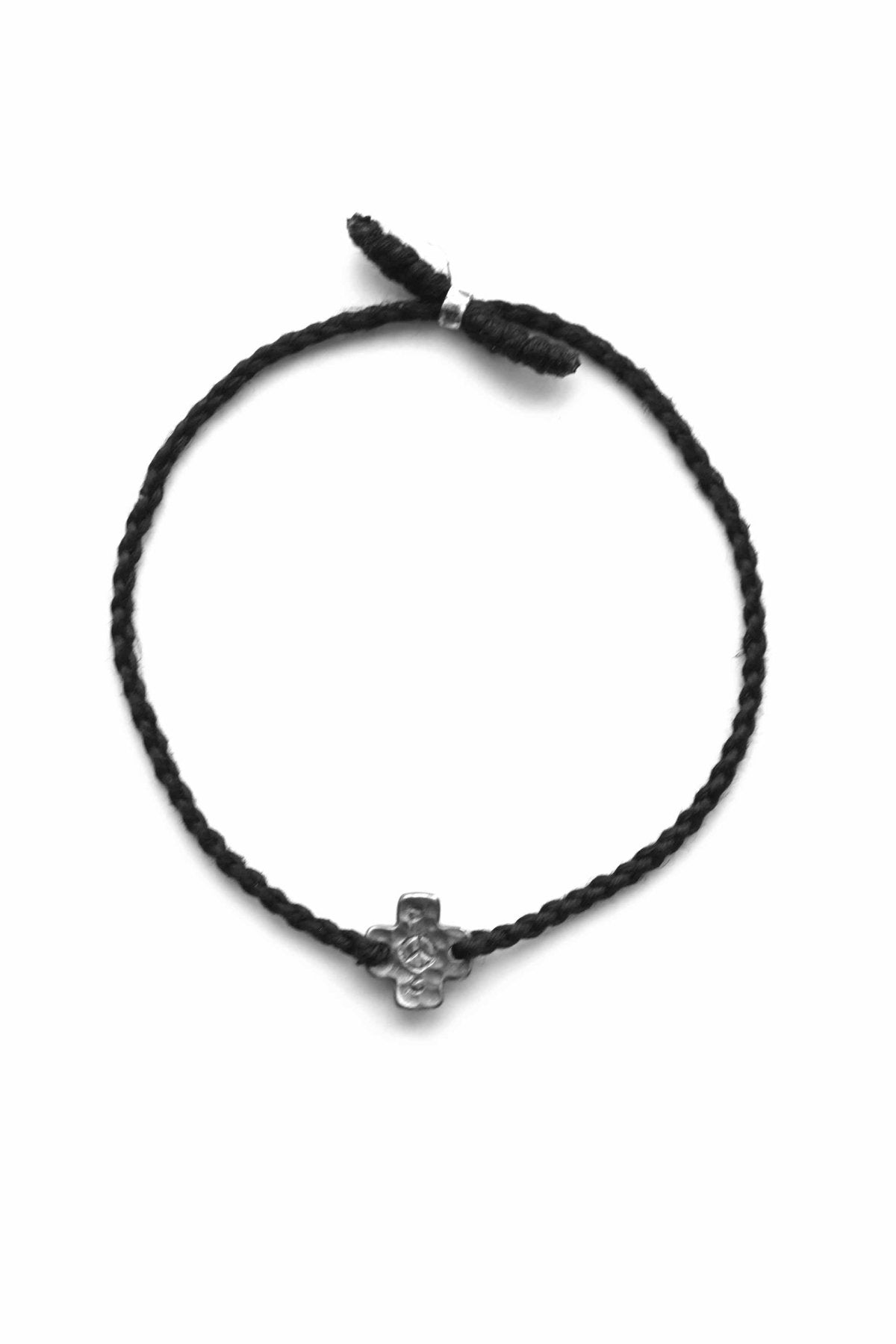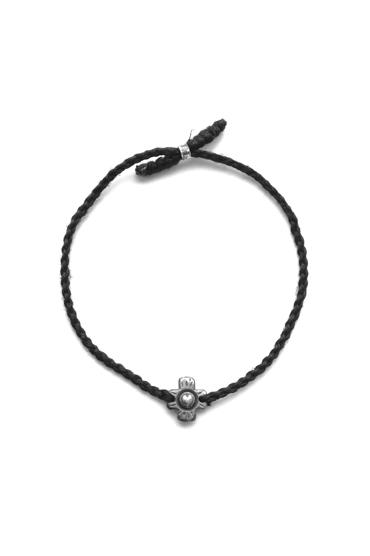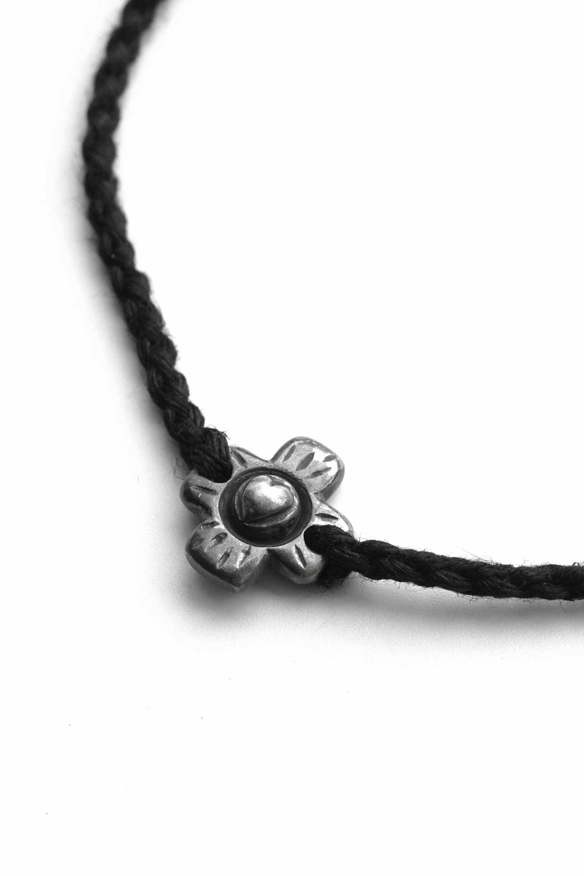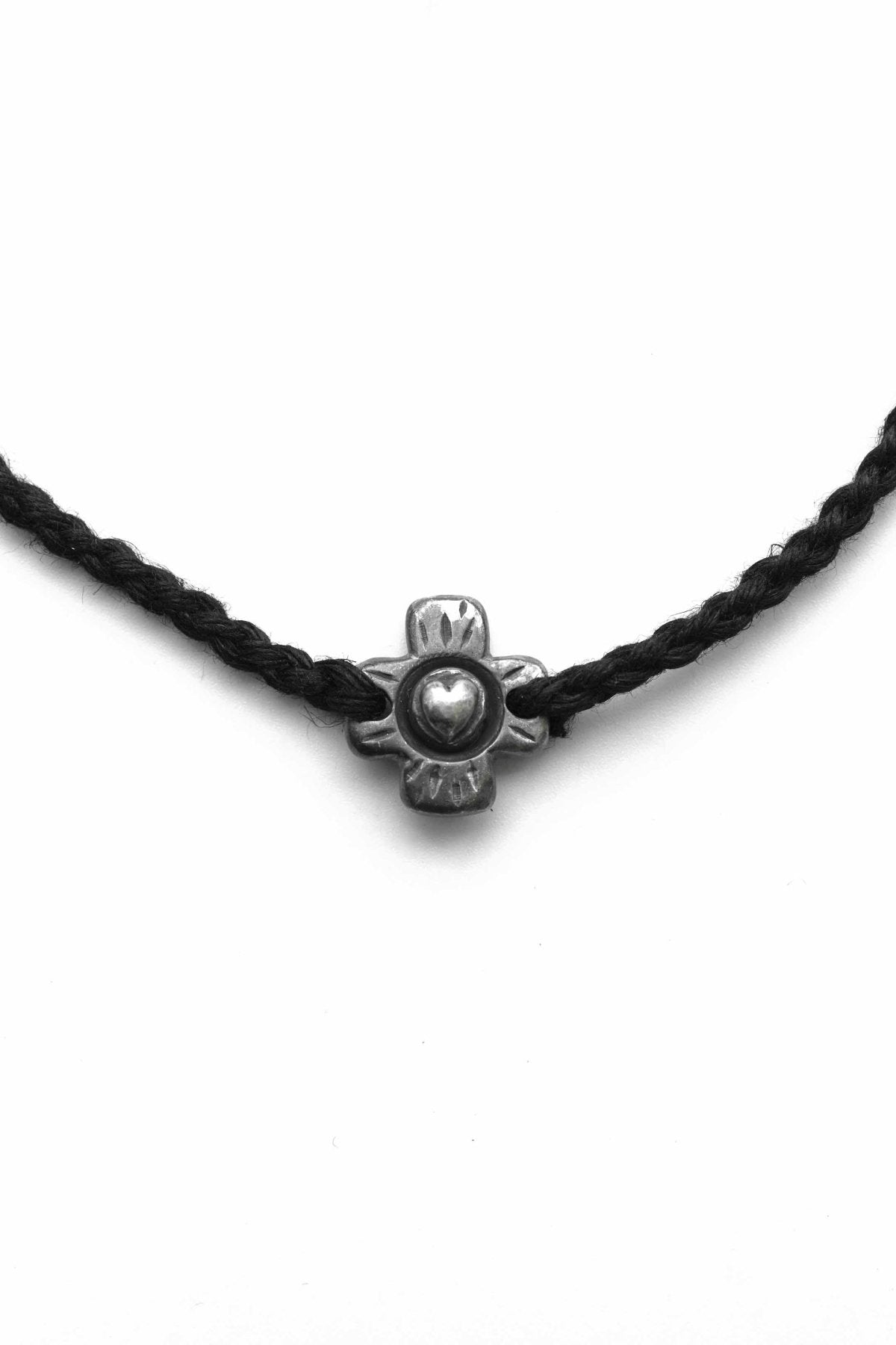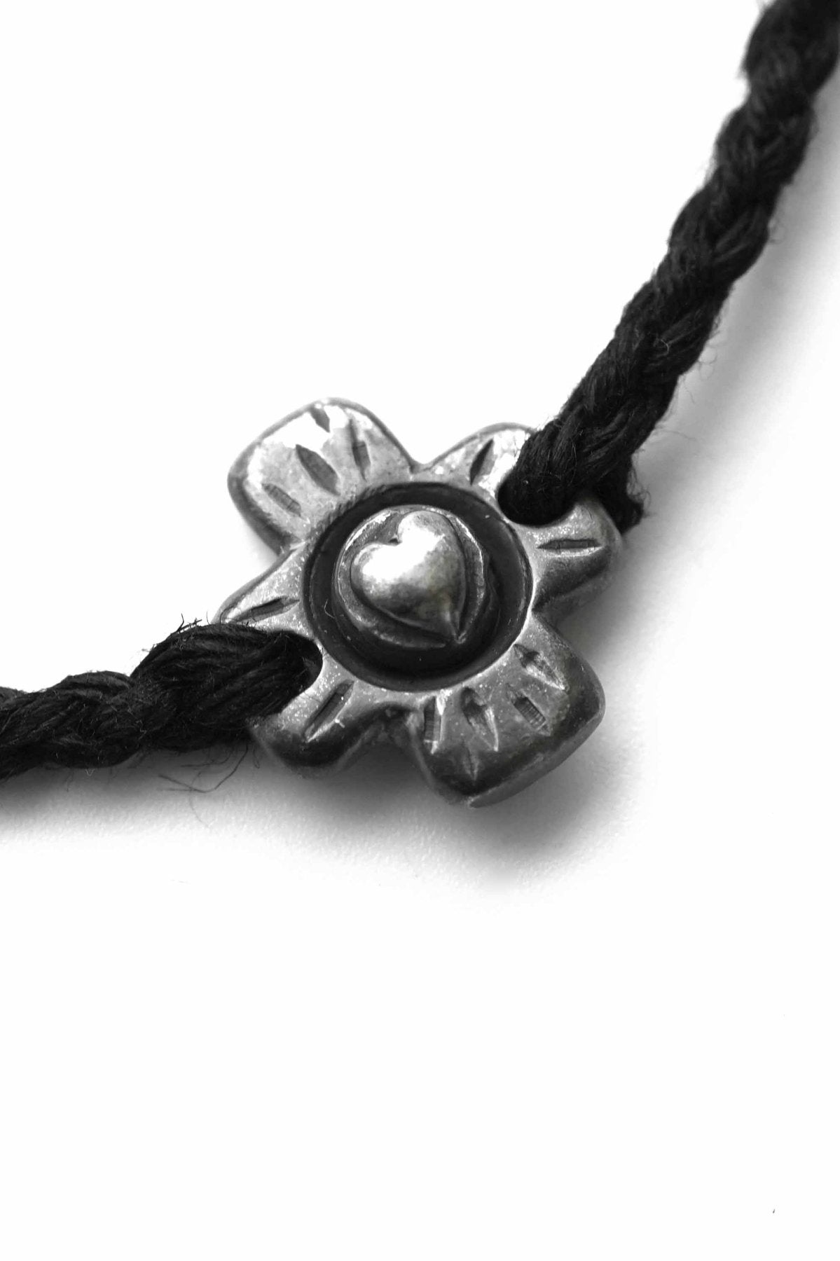 Porter Classic - SILVER & BLACK LINEN HEART 2WAY BRACELET / ANKLET - BLACK