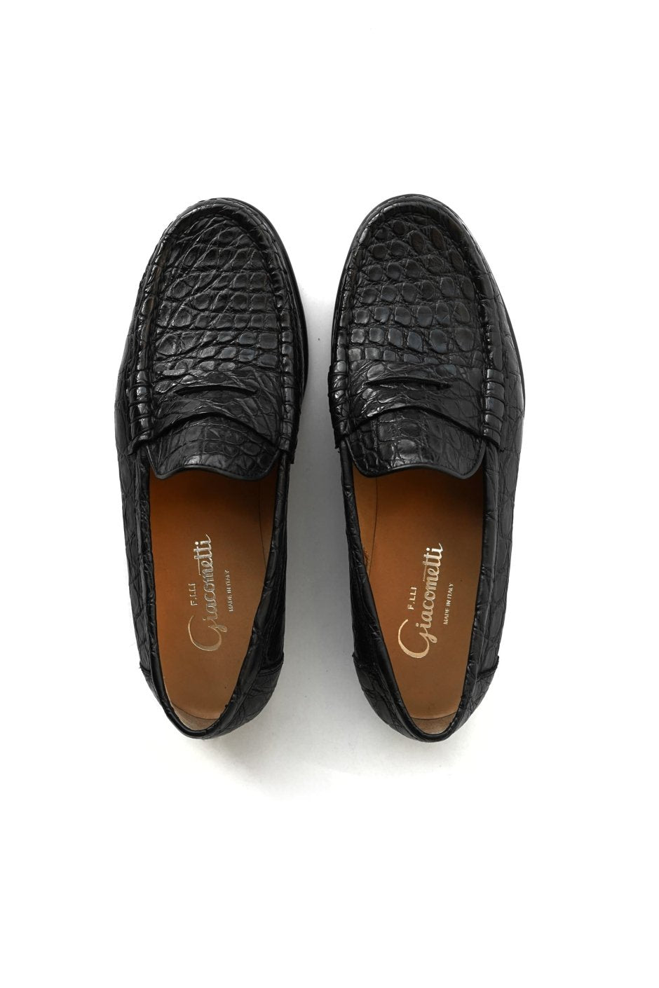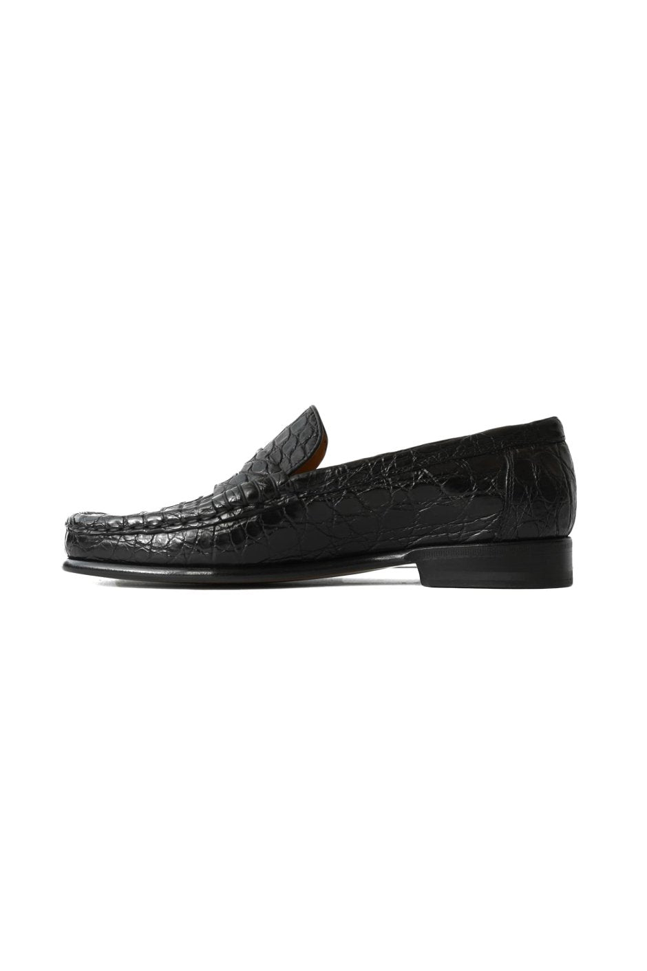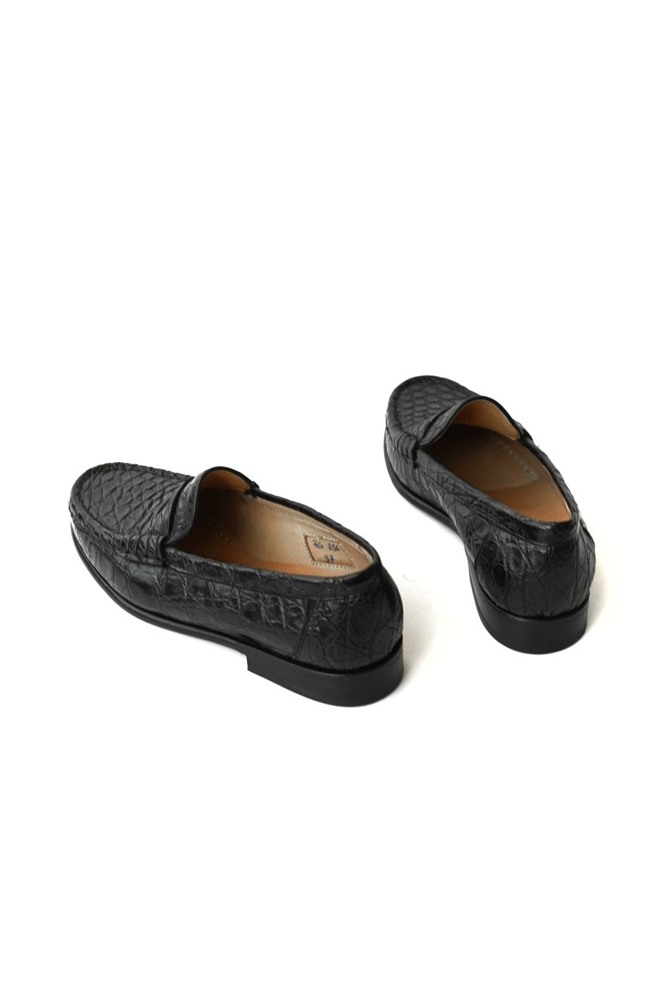 カイマンクロコダイルを贅沢に用いたローファー。美しい光沢感のあるクロコダイルは、一見堅そうに見えますが、とてもしなやかで馴染みの良い素材。イタリア靴とは思えない仕上げの丁寧さ、職人技が際立つ。唯一無二の存在感。
