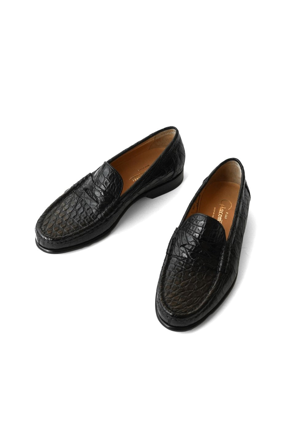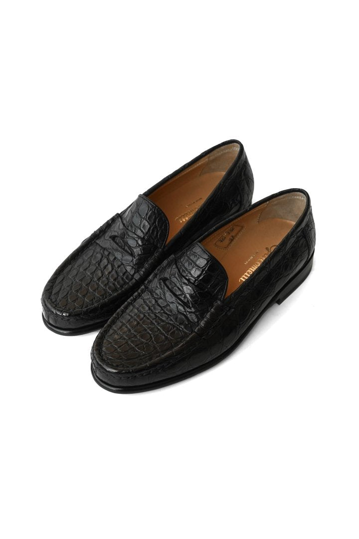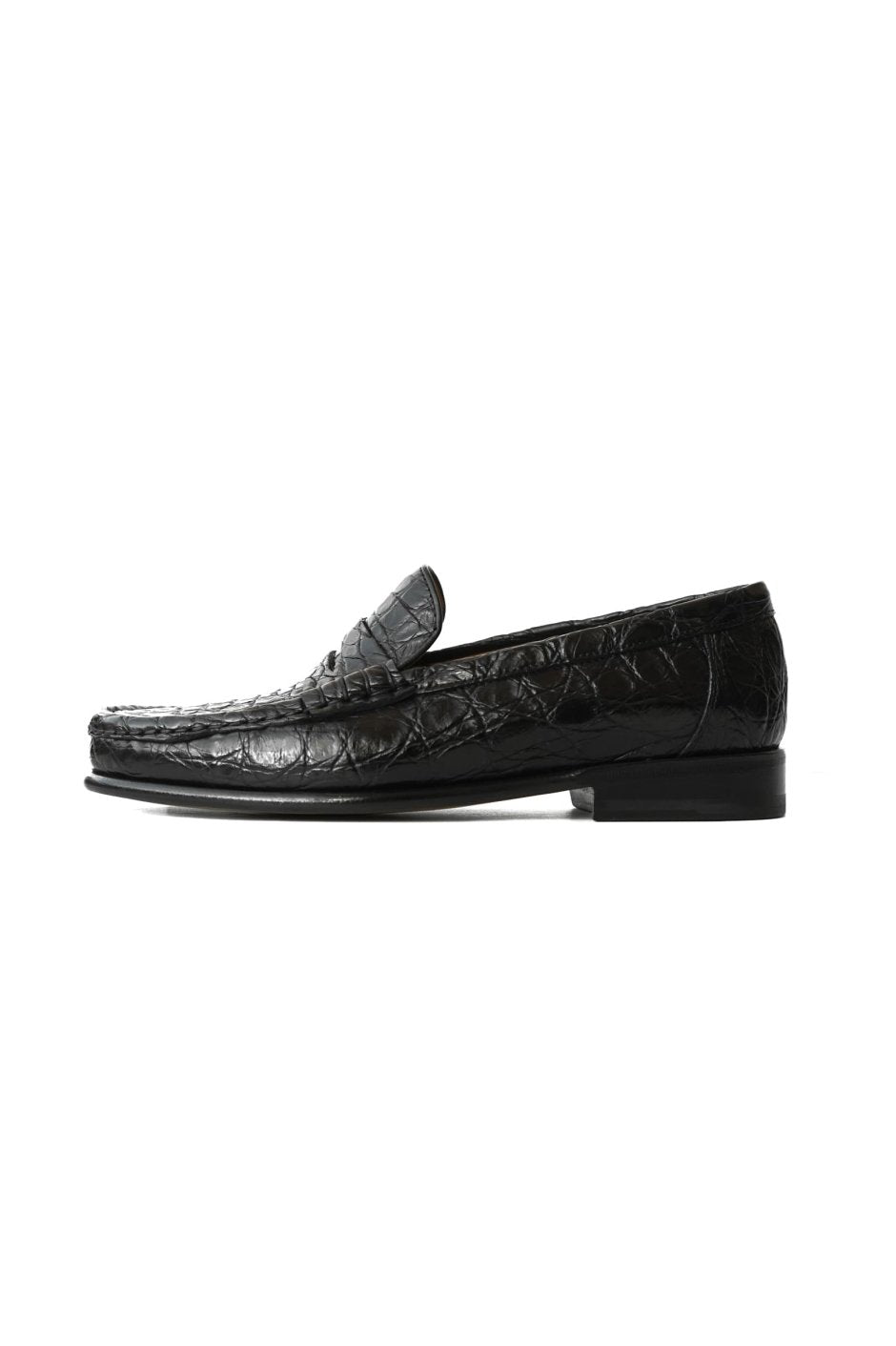 カイマンクロコダイルを贅沢に用いたローファー。美しい光沢感のあるクロコダイルは、一見堅そうに見えますが、とてもしなやかで馴染みの良い素材。イタリア靴とは思えない仕上げの丁寧さ、職人技が際立つ。唯一無二の存在感。