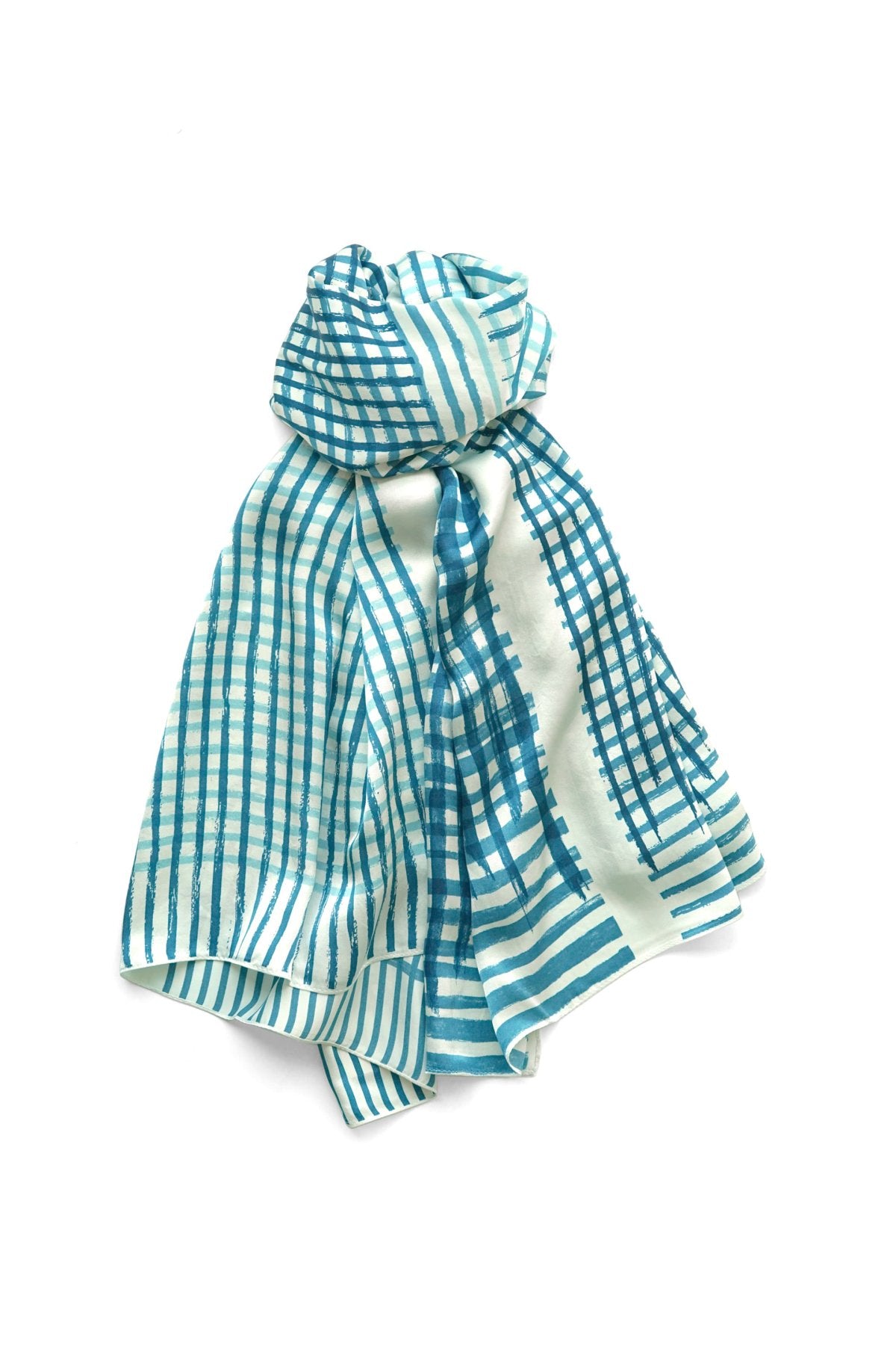 ポータークラシック《インディゴプリントシルクスカーフ 》ホワイト