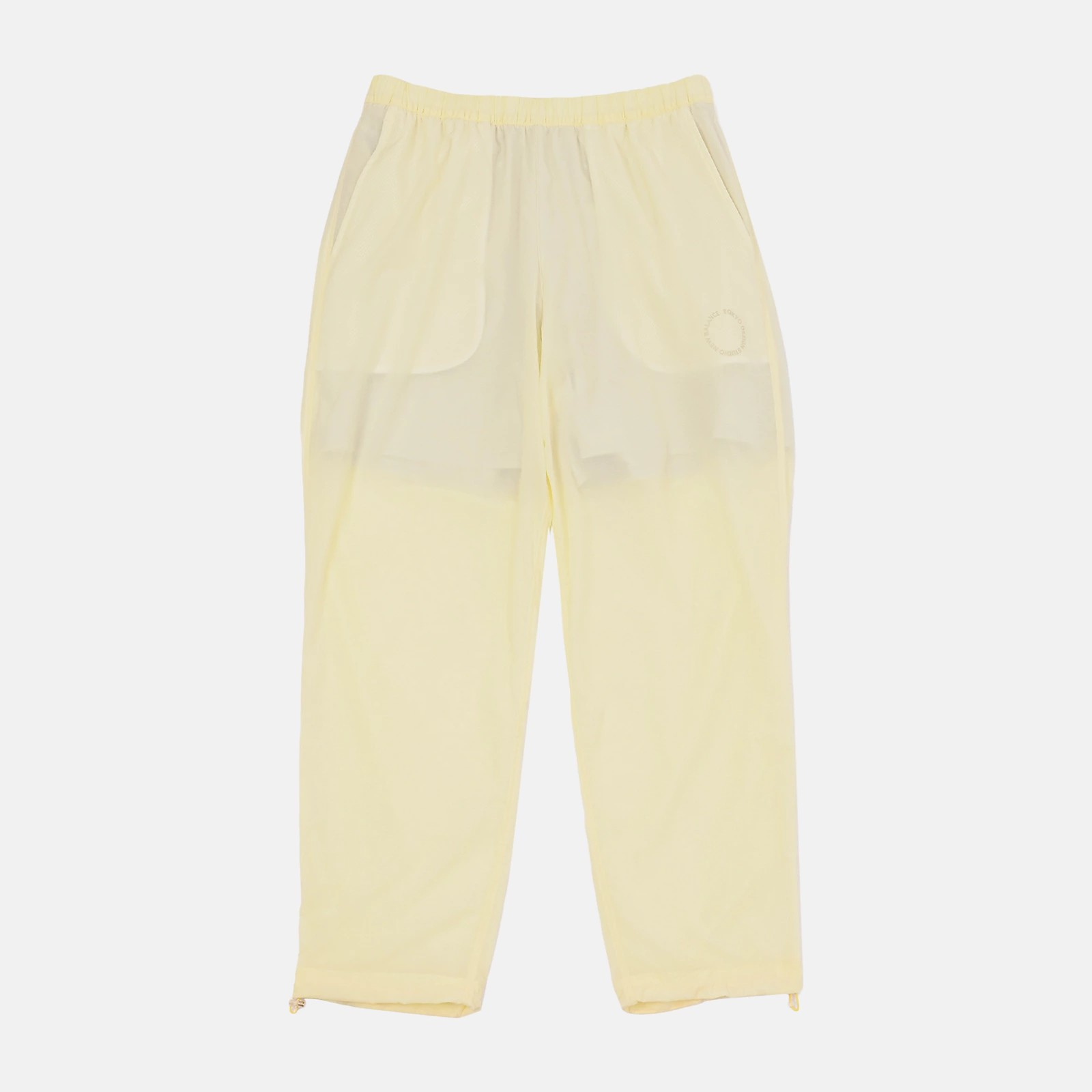 TOKYO DESIGN STUDIO New Balance ウインドパンツ。股下マチ構造。後ろ内ポケット付き。左脇にサークルロゴ。裾丸ゴム仕様で絞り、調節可能。